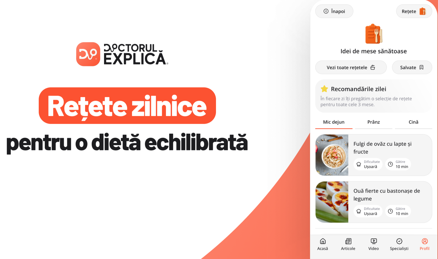 Pentru că știm că nu e ușor să-ți schimbi rutina. Dar știm și că fiecare pas mic contează, iar atunci când ai sprijinul potrivit, lucrurile devin mai simple. Aplicația Dr. Explică este un ghid prietenos, cu informații sigure, sfaturi practice și idei care se potrivesc cu ritmul tău de viață.