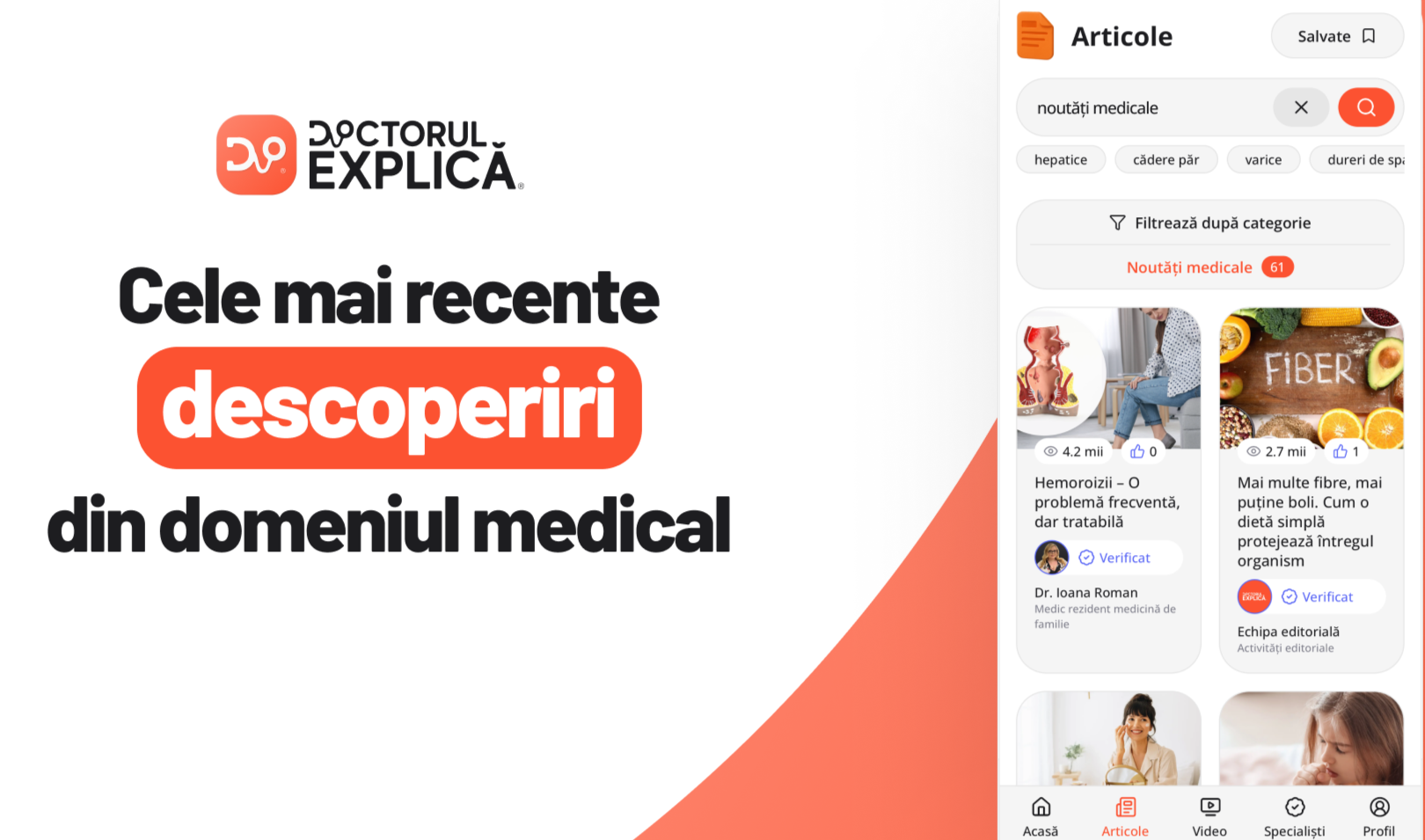 Sănătatea evoluează constant. În fiecare zi apar studii, tratamente și recomandări noi care pot face diferența. Aplicația Dr. Explică îți aduce aceste informații într-un format prietenos, ușor de parcurs, pentru ca tu să rămâi conectat la ce este relevant.